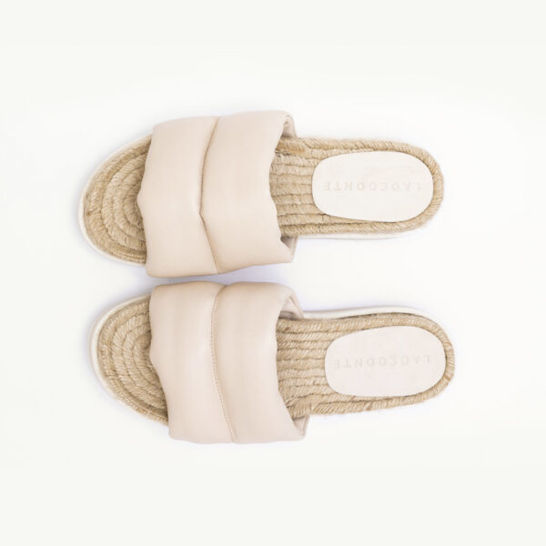 109,00€CALLIE. All leather sole with jute and micro laminate sole divided in different parts for an extra comfort. Has a soft lamb leather upper which is quilted. From the cut to the arrangement of the fabric, the artisans follow each step meticulously to create this beige quilted sandal. Designed and handmade in our atelier in Spain. This shoes sizes normally, take your usual size.