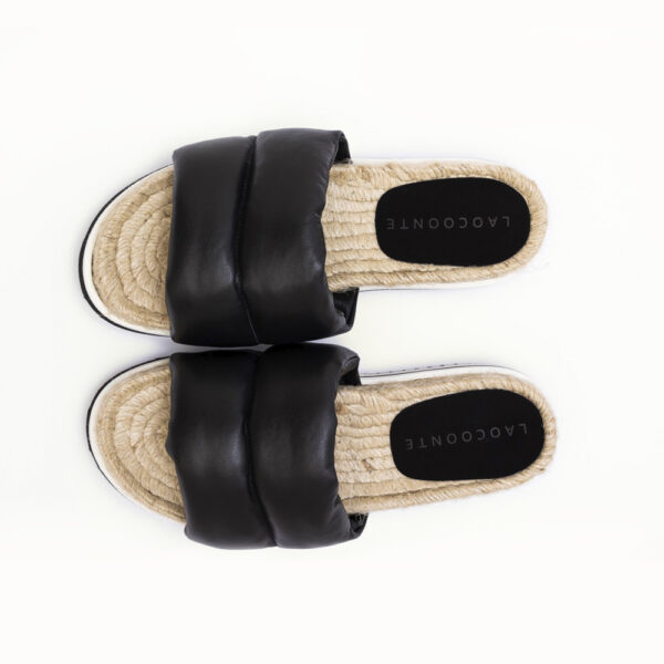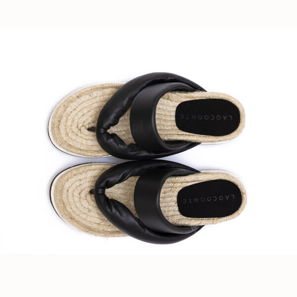 109,00€CALLIE. All leather sole with jute and micro laminate sole divided in different parts for an extra comfort. Has a soft lamb leather upper which is quilted. From the cut to the arrangement of the fabric, the artisans follow each step meticulously to create this black quilted sandal. Designed and handmade in our atelier in Spain. This shoes sizes normally, take your usual size.