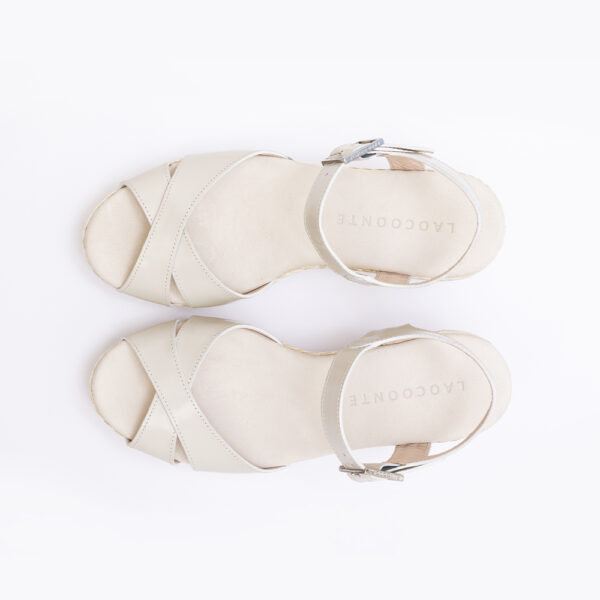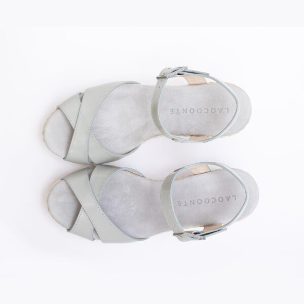 114,90€KARA. All leather sandal with a covered jute heel and a padded leather insole. Double crisscross leather band in light grey, adjustable strap with a nickel free buckle closure. A sandal that despite having that handmade touch that is trendy, it’s still highly sophisticated. This sandal underlines the dazzling and radiant sensuality. Designed and handmade in our atelier in Spain. This shoes sizes normally, take your usual size.