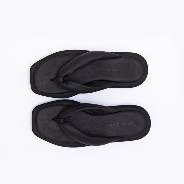 109,00€PROVENZA. All black leather flat sandal, with square toe point, quilted upper in soft lamb leather. These genuine sandals are the softest shoes you will wear this summer. Featuring a padded insole also in leather for optimum comfort. Designed and handmade in our atelier in Spain. This shoes sizes normally, take your usual size.