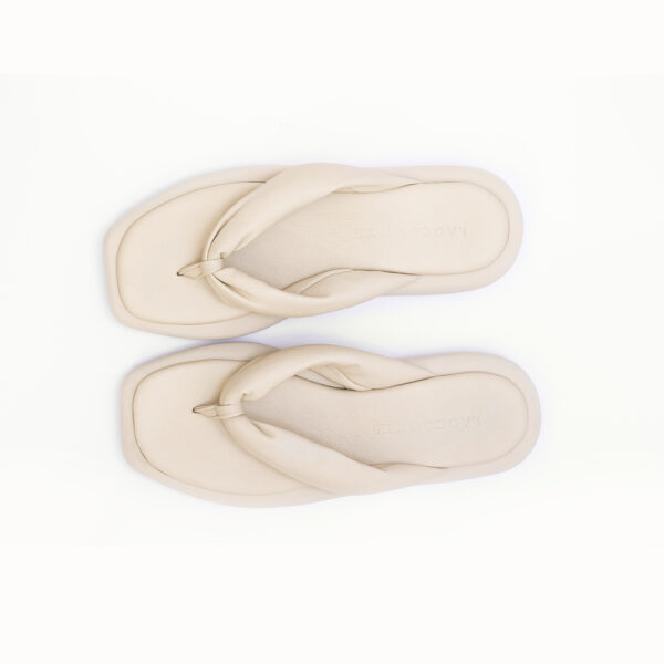 109,00€PROVENZA. All beige leather flat sandal, with square toe point, quilted upper in soft lamb leather. These genuine sandals are the softest shoes you will wear this summer. Featuring a padded insole also in leather for optimum comfort. Designed and handmade in our atelier in Spain. This shoes sizes normally, take your usual size.