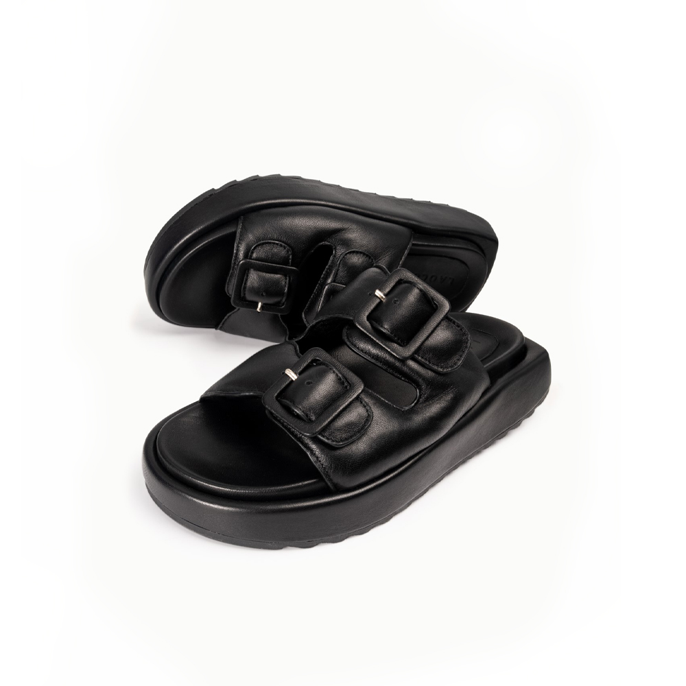 ANAIS. Quilted soft black lamb leather upper with square buckle nickel free closure. Padded insole and lined in leather. Every single piece is lovingly stitched together and shapes into place to ensure the ultimate fit, every time. Few shoes encapsulate so well like this platforms. Designed and handmade in our atelier in Spain. This shoes sizes normally, take your usual size.